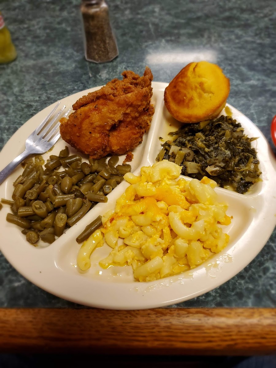 This is where my brother wanted to go for his birthday lunch so he could get the shrimp, which is served on Mondays. We all got a small plate that included 1 meat, 2 sides, 1 bread, and 1 dessert. It was my 1st time going. I enjoyed the shrimp and sides. I also enjoyed looking around at the items for sale in the front of the restaurant.